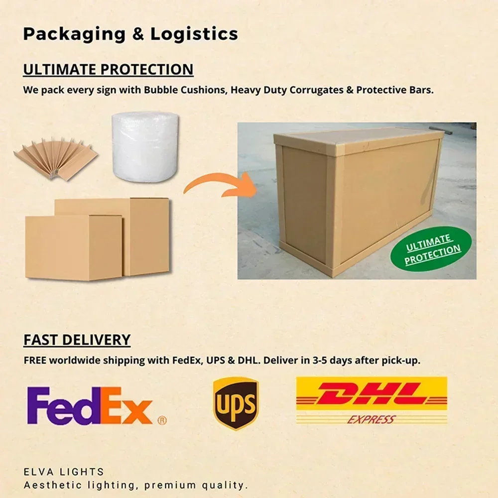 ⑤【About Service】Production is usually completed within 24 hours after your payment, and you can receive your package within 5-7 working days. If you have any question with the customize neon sign on pre-sale or after-sale,please contact us through AliExpress. Our customer service team will be happy to assist you to solve with any questions or concern.At the same time, we provide a 365 day product warranty.
